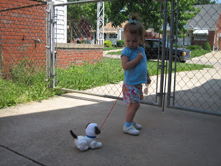 walking the only pet she’ll ever own (if it’s up to me – which it’s not – but daddy’s not pro-pet either!) 🙂