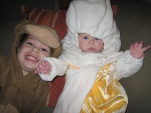 Love the sibling combo! Very creative. At our fall party at church Alex was a cowboy and Sam was his horse–though there were strict no riding rules!! I love the baby costumes. So adorable!!