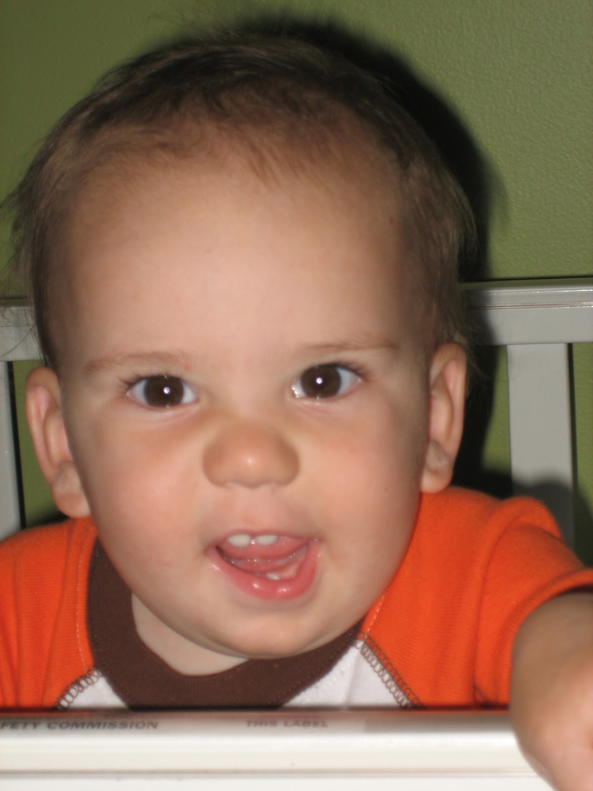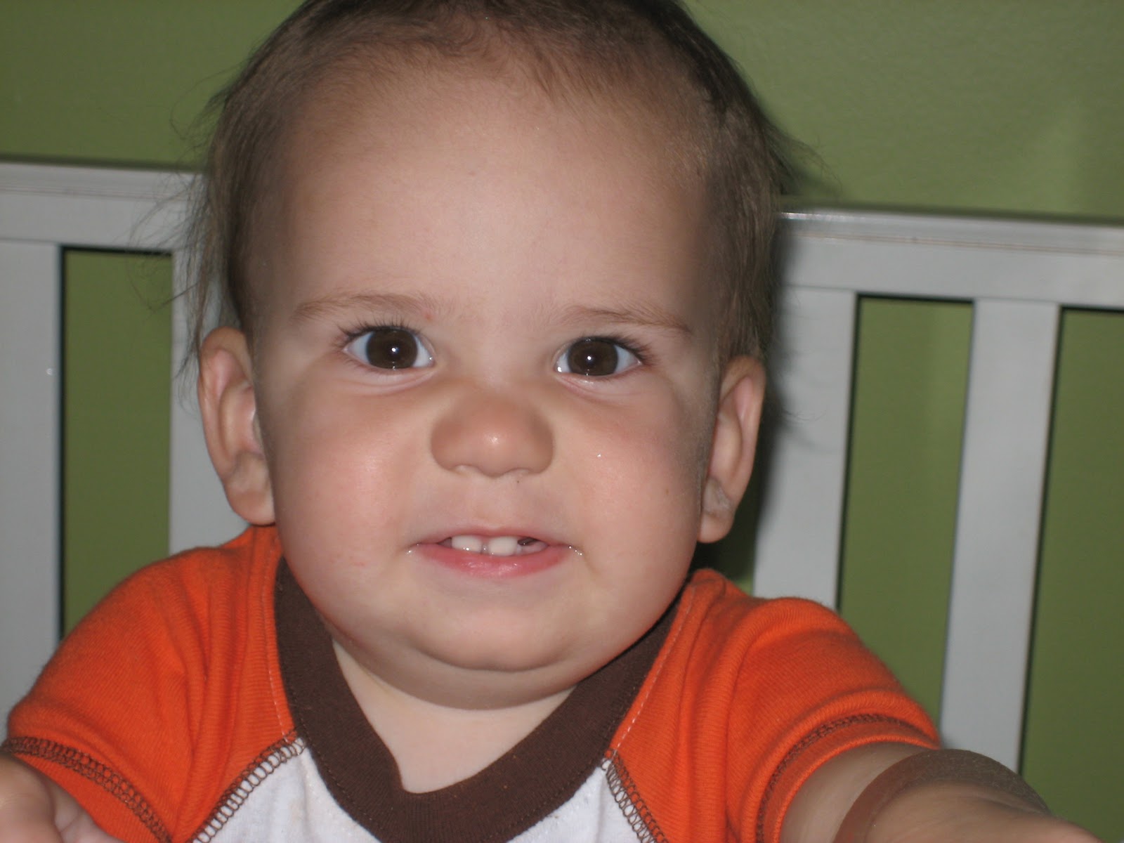 on december 4th, he turned 19 months old. and i looked at this face again and was glad to see he still has bugs bunny teeth. guess that means my blinds can be open awhile longer.